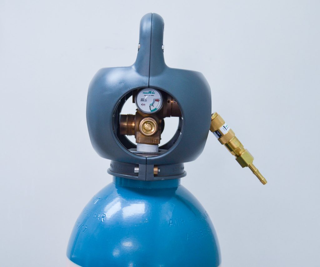 The cylinder is ergonomically and safely designed and allows for simple connection to welding machines through a quick coupler system.